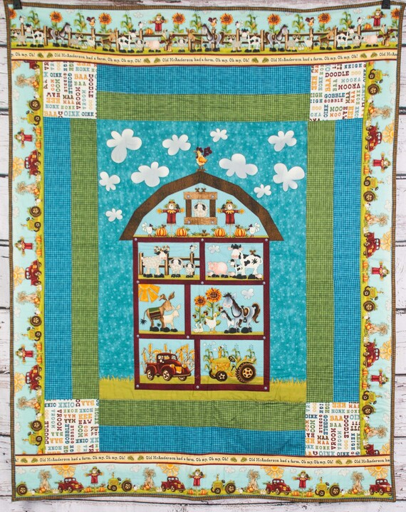 We also have cowboy barn and tractor related fabrics. Farm Quilt Kit Panel Quick Easy Fun Beginner Project Quilting Fabrics Baby Nursery Farm Bedding Cow Horse Pig Barnyard Animals Sheep KBlandfordFabrics 5 out of 5 stars 5525. Baby panel cot quilt gender neutral.