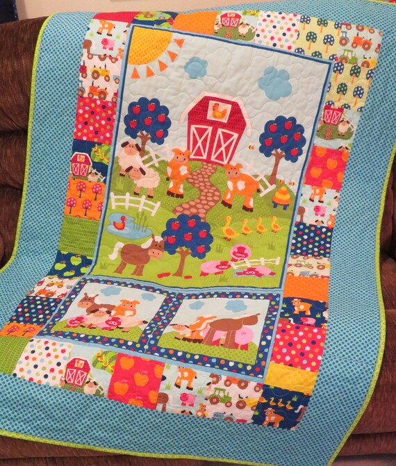 Farm Panel Baby Quilt W Farm Animals Etsy