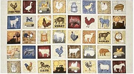 Amazon Com Bountiful Farm Animal Cow Rooster Small Blocks Cotton Fabric Qt 24 X44 Panel Lukas Winges