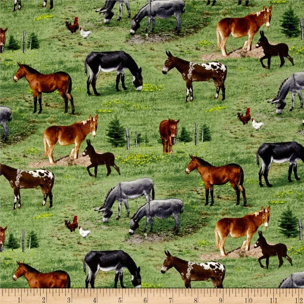 Amazon Com Elizabeth S Studio Farm Animals Mules Quilt Fabric Green