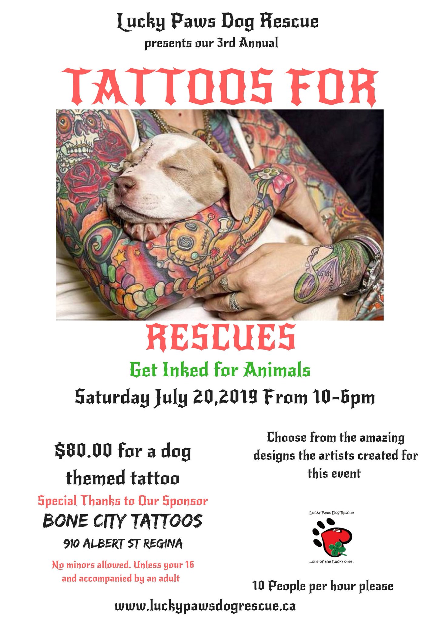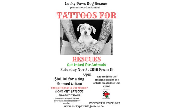 Luckypaws Dog Rescue On Twitter Hey Regina Mark This On Your Calendar We Will Be Having Our Popular Tattoo For Rescues Event On July 20th From 10 00 6 00pm At Bone City Tattoos Getinkedforrescues