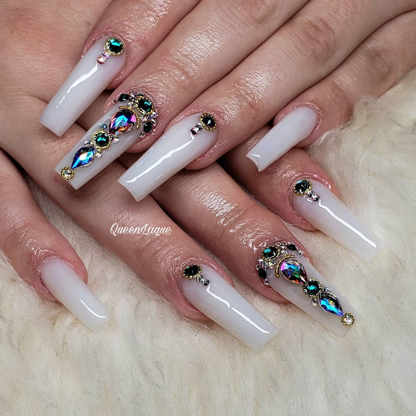 Long Tapered Square Soft White Encapsulated Charms Acrylic Nail Youtube